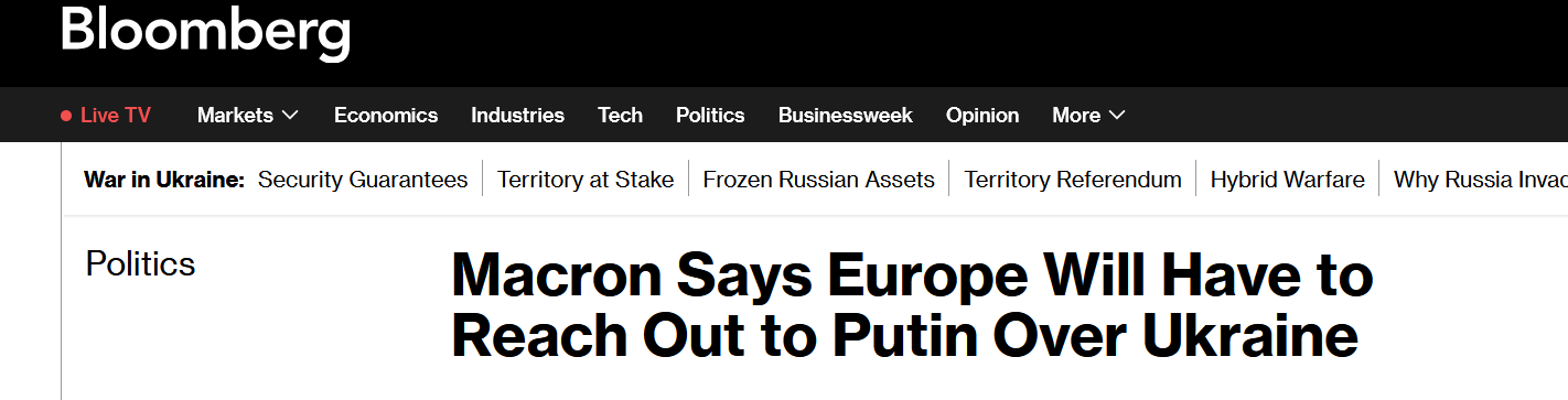 «Либо в ходе текущих переговоров будет достигнут прочный мир, либо мы найдем способы возобновить диалог европейцев с Россией в условиях прозрачности и в сотрудничестве с Украиной. Тогда снова станет полезно поговорить с Владимиром Путиным», — сказал Макрон.
