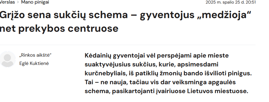 Автор статьи в Lietuvos Rytas подчёркивает, что обычно эти преступники не являются гражданами Литвы и принадлежат к организованным группам, которые путешествуют по всей Европе.
