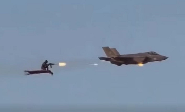 Очередное видео сетевых умельцев порадовало пользователей ФБ: храбрый басидж преследует израильский F-35 и почти-почти догоняет его. А вы думали, ковер-самолет - это сказки?