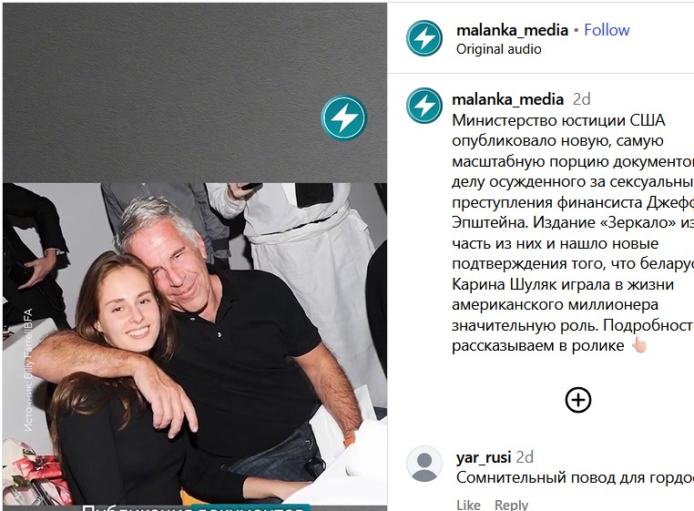 Ранее журналисты сообщали, что Эпштейн переводил в Белоруссии суммы денег в 10 и 20 тысяч долларов.