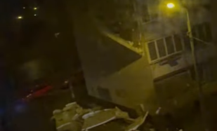 Недавняя буря оторвала от многоэтажки...кусок стены. Недавно отреновированной. Об этом сообщили в Фейсбуке жители рижской Болдераи. Падая, куски стены так же задели стоящий рядом автомобиль.