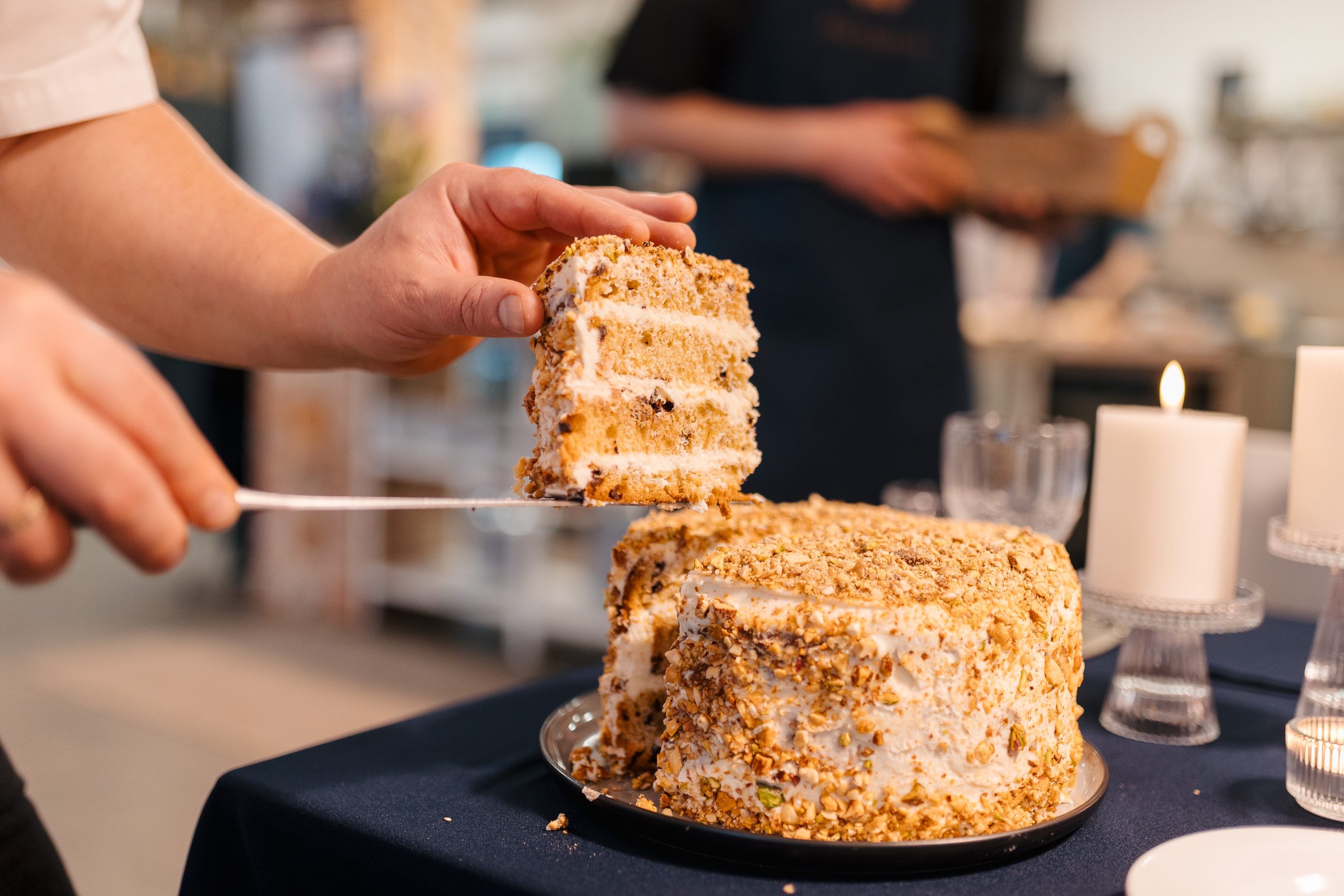 Ингредиенты: 1 шт. Well Done Premium Panettone с фисташковым кремом и кусочками темного шоколада; 600 г классического крем-сыра Well Done; 250 г сыра Mascarpone; 10 столовых ложек сахара; 170 г сливочного масла; цедра одного апельсина; фисташки для декора; джем из красного апельсина Well Done Premium.