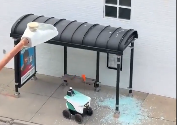 This 160-pound AI bot in Chicago just drove straight through the glass pane of a bus stop, showering itself in shattered glass. Now its sensors are so scrambled by the debris that… pic.twitter.com/G8hzBvEjp5