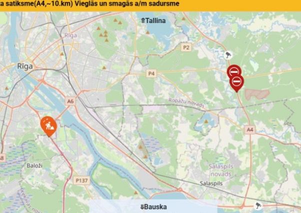 Дорожно-транспортное происшествие произошло на Рижской окружной дороге на участке Балtezers - Saulkalne (A4), примерно на 10-м километре трассы. Авария случилась возле перекрёстка с дорогой P4, ведущей в сторону Эргли.