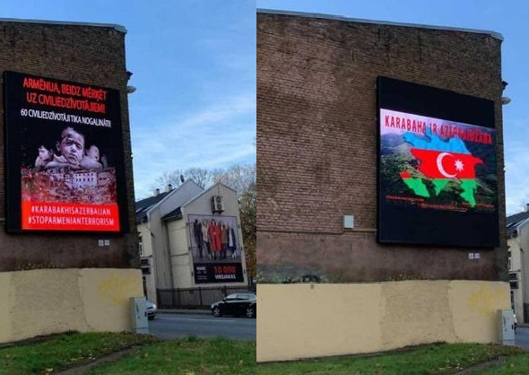 Кроме того, в рекламе республика Армения названа агрессором, хотя в настоящее время идет война между силами обороны Азербайджана и Нагорного Карабаха, а не Арменией, которая не участвует в войне, что способствует возможному ухудшению латвийско-армянских отношений", - описала нарушение член Армянской общины Латвии Нарине Погосян.