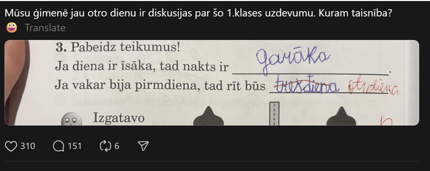 sintija.gredzena: «Ребёнок прав. Всё написано правильно. И очень жаль, что учитель учит неправильно… дети в первых классах верят, что учителя знают всё и действительно учатся тому, что им говорят и показывают… и жаль, что так вводят в заблуждение ребёнка, у которого логичное мышление и правильное направление мыслей».