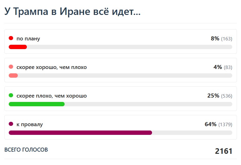 ...С другой стороны, может ли президент США Дональд Трамп праздновать победу? Судя по нашему опросу, читатели press.lv считают, что нет: