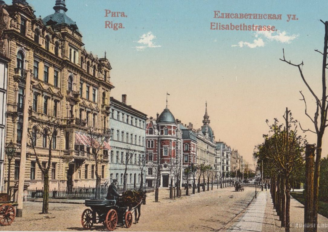 Назвали улицу в честь супруги АЛЕКСАНДРА I - ЕЛИЗАВЕТЫ АЛЕКСЕЕВНЫ: Елизаветинская. Нынешний облик она начинает приобретать на рубеже XIX-XX столетий, а старейший каменный дом – на Элизабетес, 59, - построен в 1889 году архитектором Карлом ФЕЛСКО.