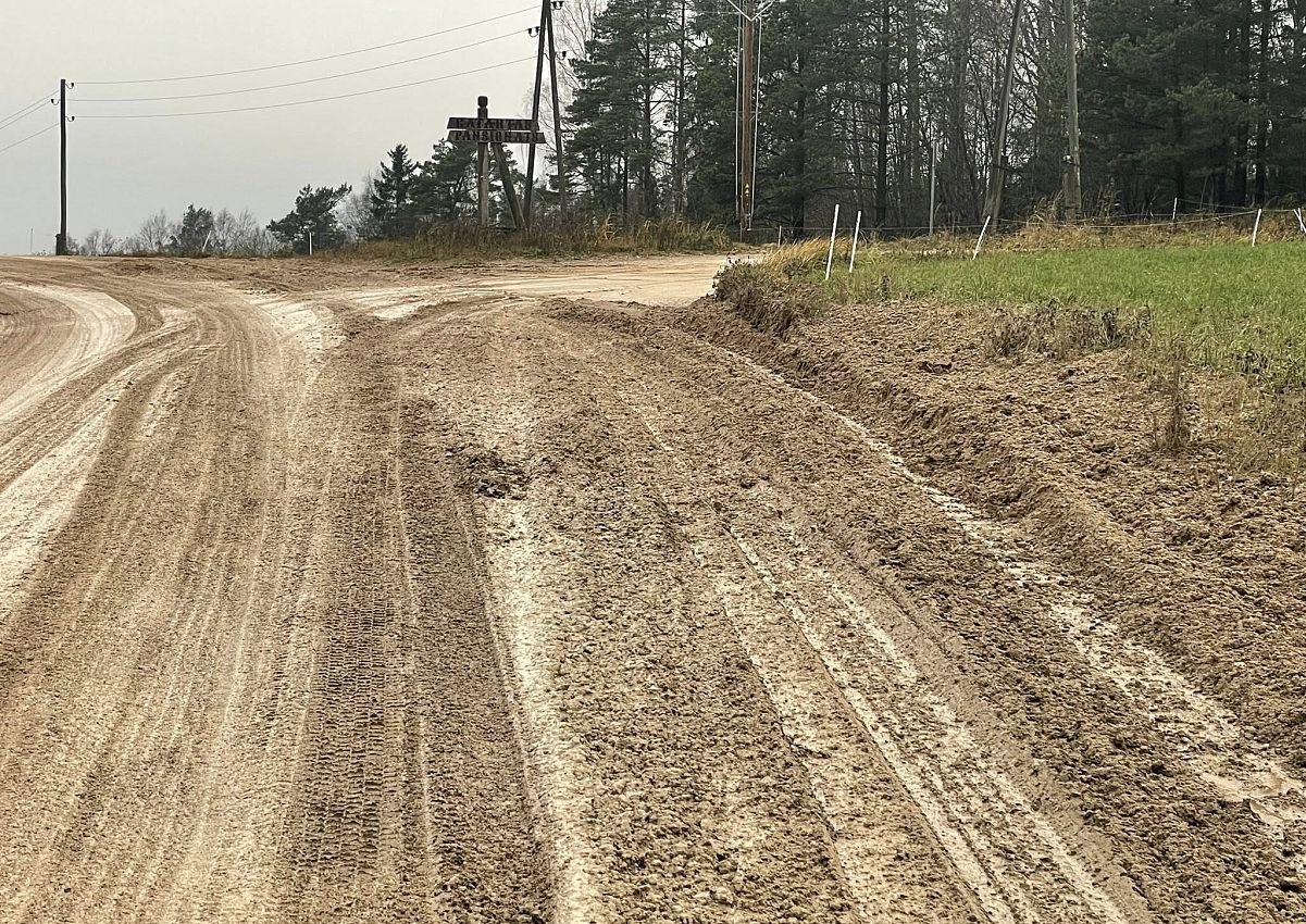 "Нынешнее утро. Друсты - Яунпиебалга. Уже месяц прошёл с тех пор, как я пытаюсь помочь дорогам в Друсты. Это вот Latvijas Valsts ceļi и представители Смилтенского краевого самоуправления называют ХОРОШИМ СОТРУДНИЧЕСТВОМ со строителями ветропарка. Мол, всё исправляется, за всем следят, а мы просто ноем и не хотим потерпеть. Я бы это назвала насилием над человеком, которому там каждый день приходится ездить на легковой автомашине на работу, в школу или по другим делам. Установлены знаки "60" - вы в самом деле думаете, что эти дороги дают вообще возможность так быстро ехать?!"