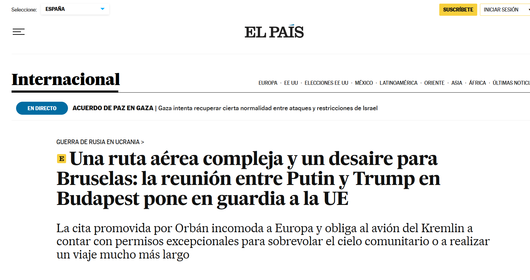 Как отмечает El País, телефонный разговор между Путиным и Трампом состоялся 16 октября и длился около двух часов. Лидеры обсудили ситуацию в Украине и договорились о проведении переговоров в Венгрии. По словам Дональда Трампа, встреча должна состояться в течение ближайших двух недель.