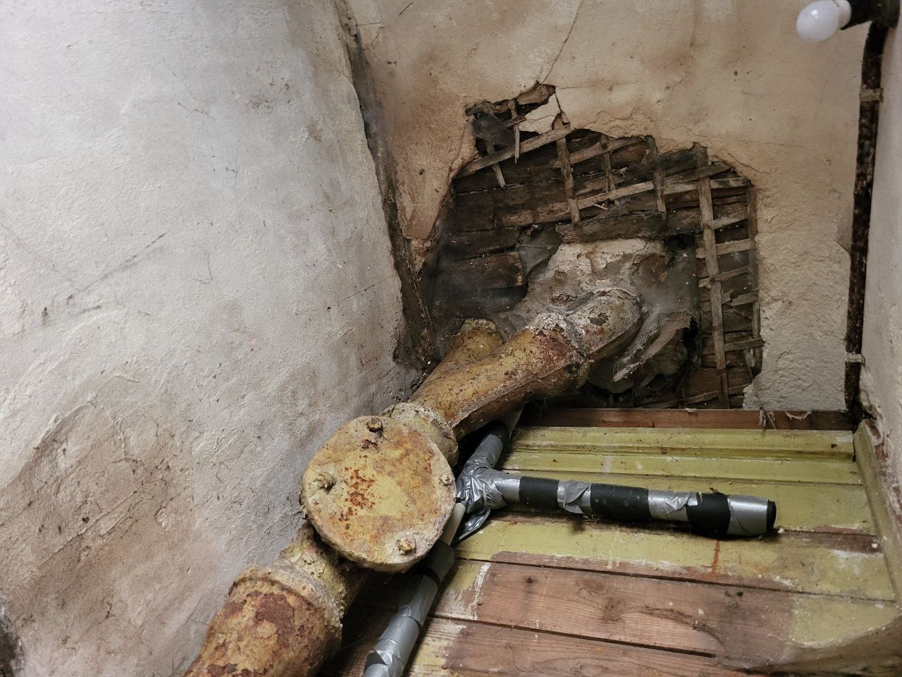 "01.01.25 мы подали жалобу на то, что из общего туалета отходы падают в подвал. Пришли сантехники, всё испортили. Забрали унитаз и всю сантехнику и ушли. С тех пор мы их не видели. И до сих пор эта изуродованная комната так и стоит. Каждый месяц мы отправляем жалобу... Ответ: в процессе..." - в редакцию пожаловалась Инара, жительница дома по адресу улица Эзера 13а в Риге.