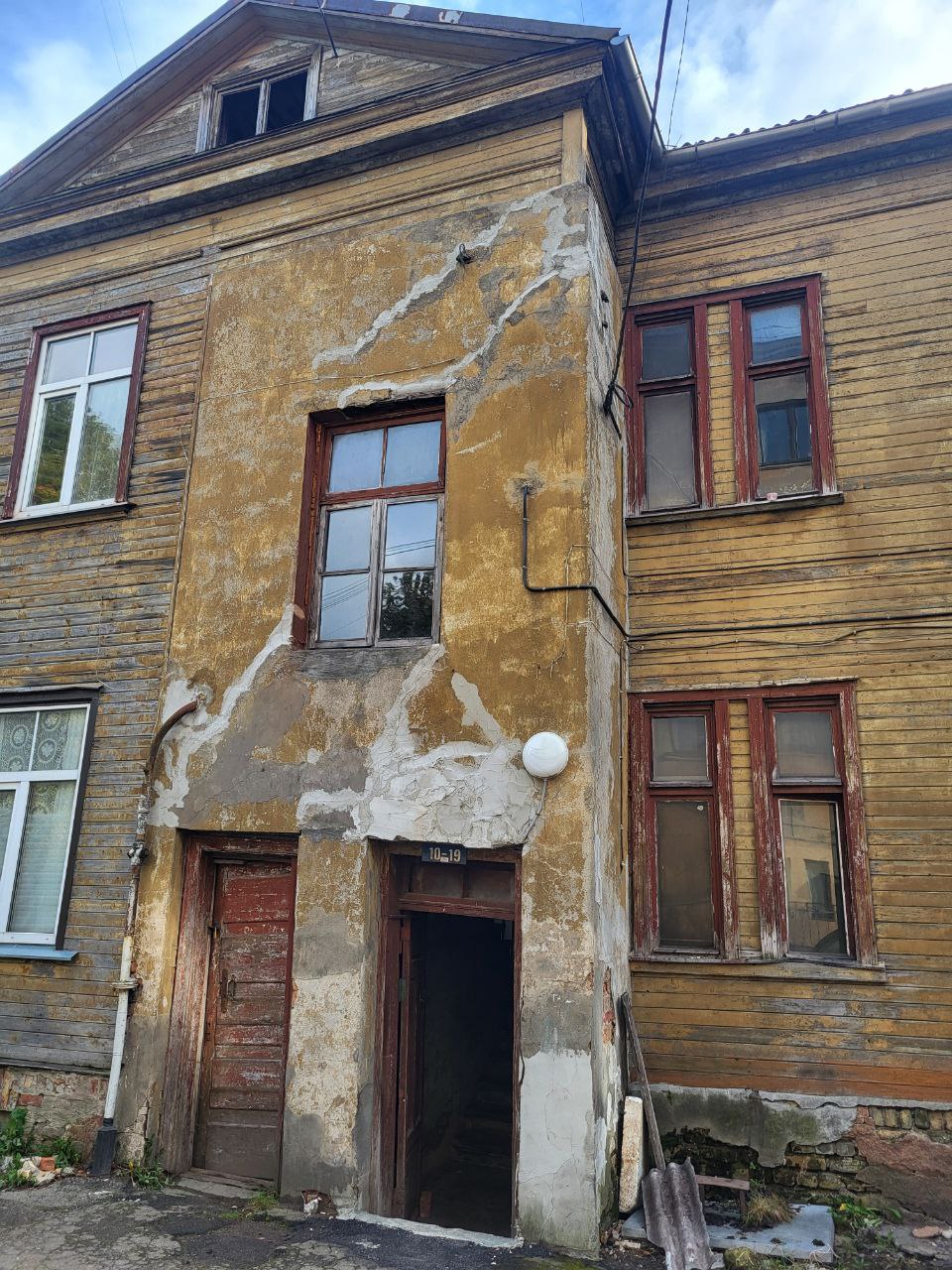 Заинтересовавшись ситуацией приезжаем на место. Да, дом далеко не новый - 1905 года постройки. Как говорится, пережил и революцию, и все мировые войны, и оккупацию. Но еще держится. Жильцы говорят, что еще десять лет назад дом был в относительно неплохом состоянии, но опасаются, что домоуправление от RNP может уже и не пережить. Требуются срочные ремонты, но управляющая компания как-то не торопится их проводить.