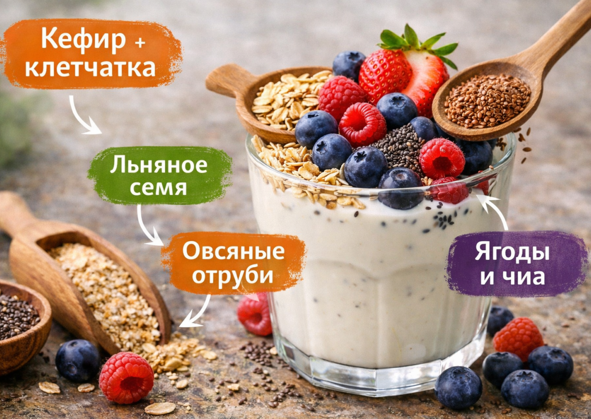Победителем стала связка кефира и разнообразной пребиотической клетчатки.