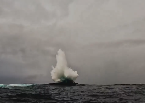 На кадрах океан выглядит как рот, который захлопывается. Вода вращается со всех сторон одновременно, затем резко схлопывается и выстреливает вверх, разлетаясь во все стороны. По словам очевидцев, человек, оказавшийся внутри, не имел бы шансов выжить.