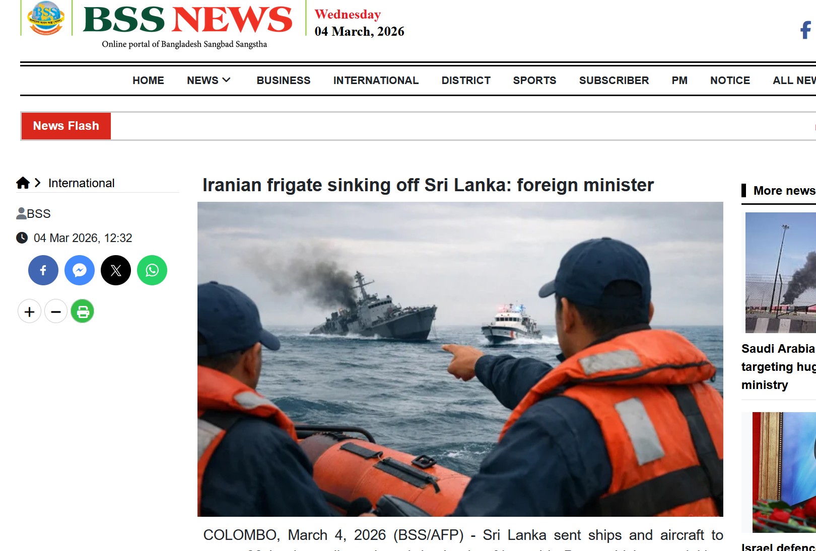 Ранее стало известно, что IRIS Dena подал сигнал бедствия у берегов Шри-Ланки, об этом сообщали местные власти. ВМС и ВВС страны были направлены на спасение иранских моряков с тонущего корабля.