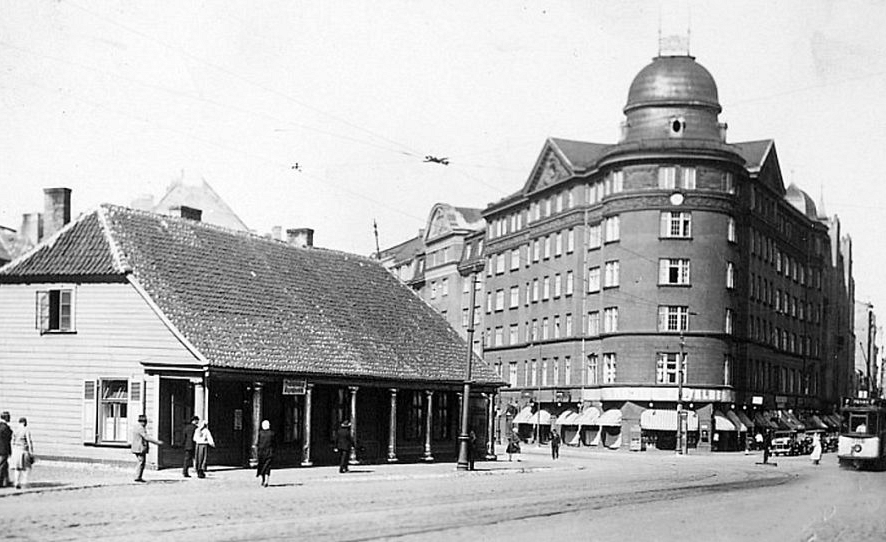 На месте этих деревянных домов сейчас театр «Дайлес» (снимок 1960-х годов).
