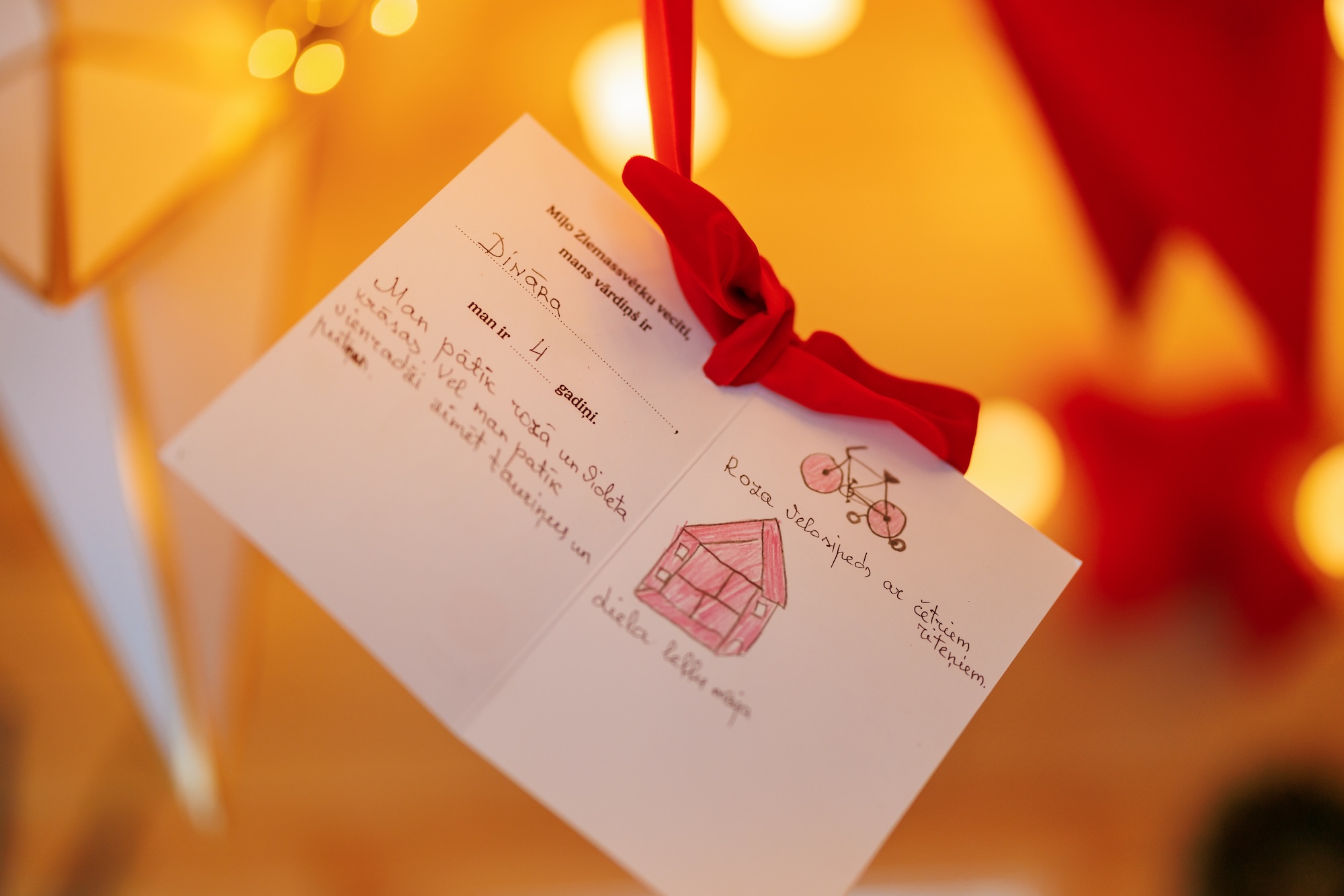 Выбрать открытку с мечтой ребенка можно цспеть лично в благотворительном домике до 12 декабря, а онлайн в Интернете до 19 декабря: laimasnamins.lv.