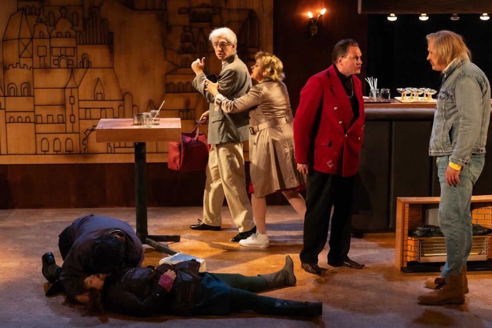 Этнические акценты в спектакле расставлены гениально – как в жизни. Без искажающей реальность политкорректности. Бандит разговаривает одновременно на трех языках – русском, латышском и русском матерном. Инженер старательно интегрируется в новую жизнь и усердно пытается  разбавлять родной русский знакомыми латышскими выражениями.