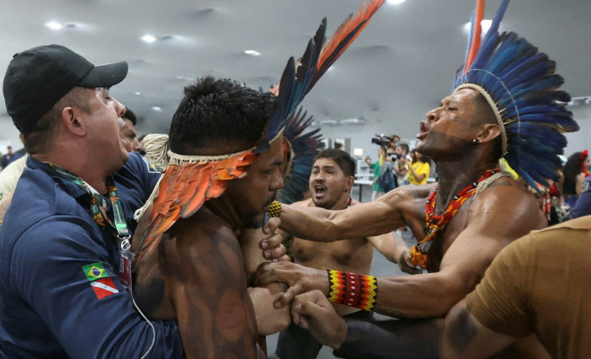 Как сообщает Reuters, несколько десятков представителей коренных народов Амазонии прорвались через охрану, требуя настоящего, а не символического участия в переговорах.