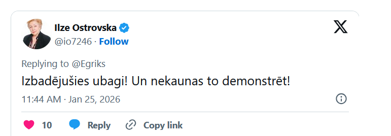 "Изголодавшиеся нищие! И не стесняются это демонстрировать!" - ответила Илзе Островска.