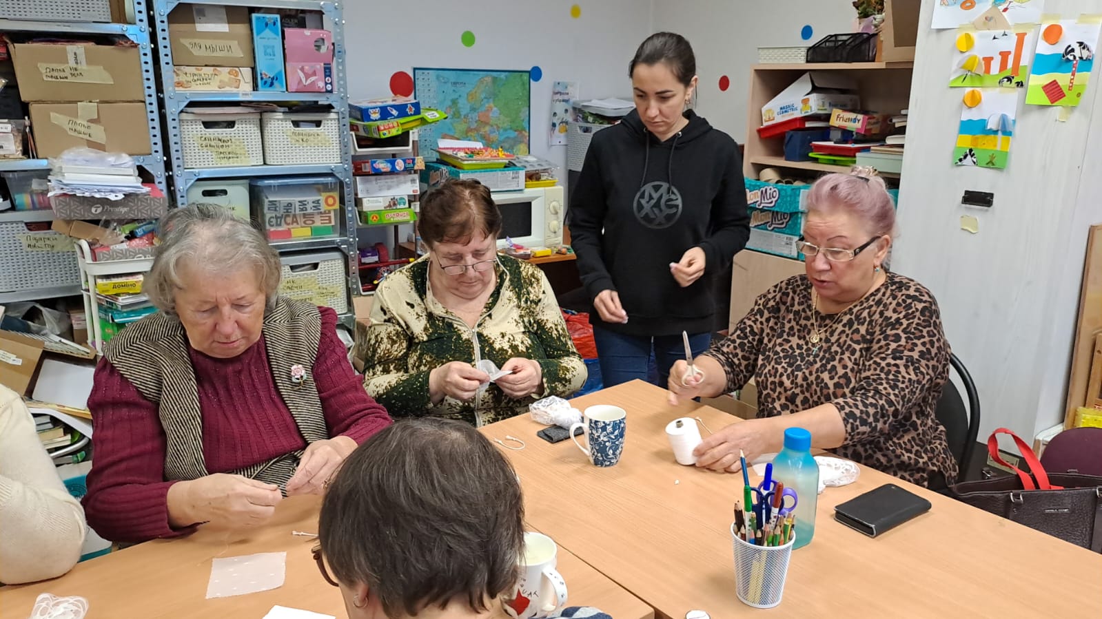 Что ещё? Нам нужно платить аренду. Занятия для сеньоров, разумеется, бесплатные, но расходы на их проведение никто не отменял. Мы платим аренду, покупаем материалы для занятий, чай, кофе, печенье. Наши бабулечки любят сладкое, а чай с зефиркой способствует душевным разговорам.
