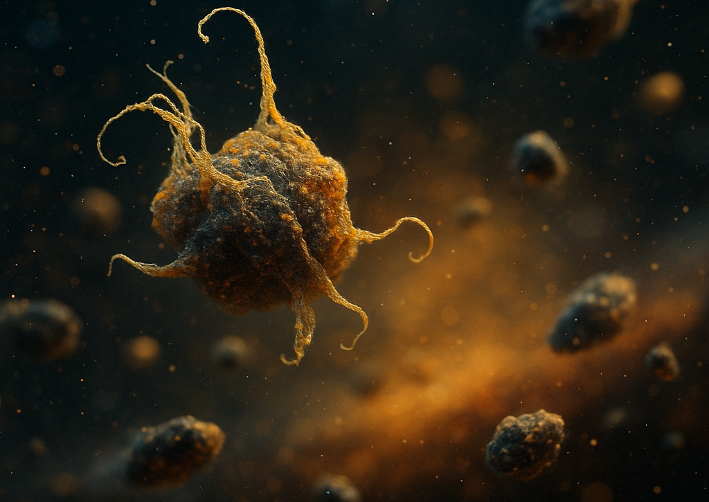 остатки сложных молекул, переживших межзвёздный полёт.