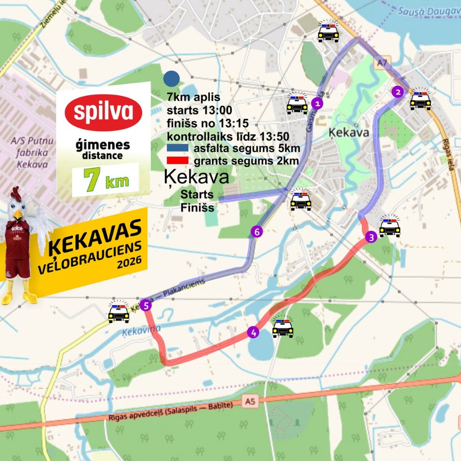 13.00 - 13.50 - в центре Кекавы, где будет проходить семейная дистанция (7 км).
