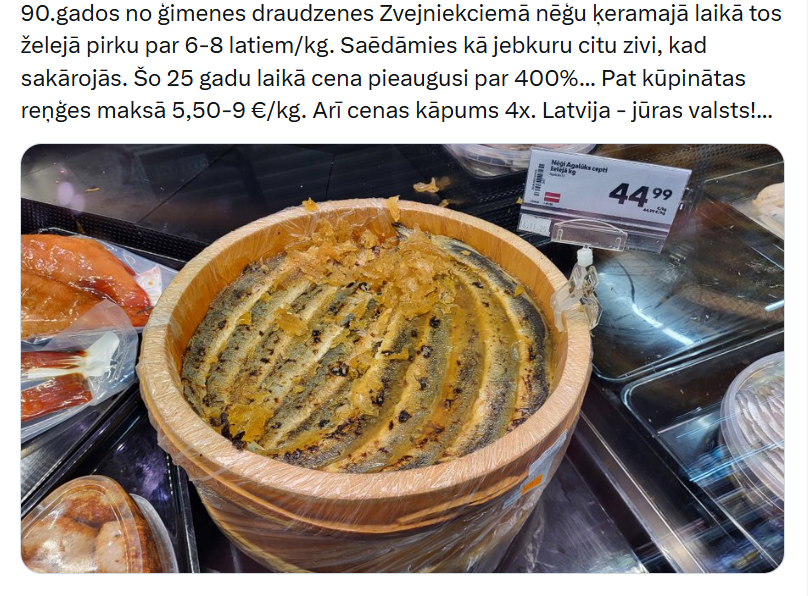 "Для Латвии это плохой знак, что её коренное население больше не может покупать плоды своей природы. Я помню с детства, что миноги всегда были на нашем праздничном столе. А в свободной Латвии разве что жареная селедка. Это тот ЕС, которого мы так хотели", - жалуются люди.