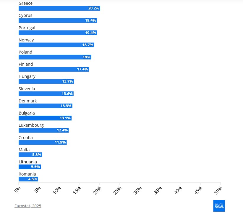 Однако для Восточной Европы есть не только плохие новости. В период с 2021 по 2025 год в Болгарии зафиксирован самый большой рост чистой заработной платы - на 69,4%.