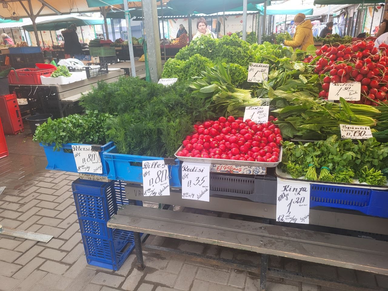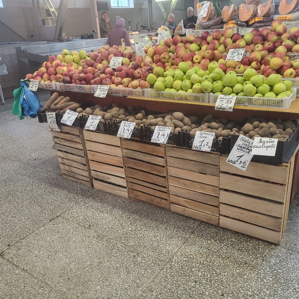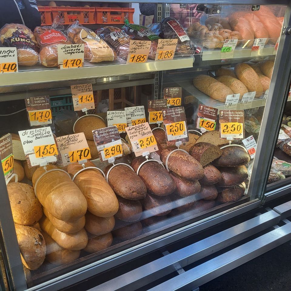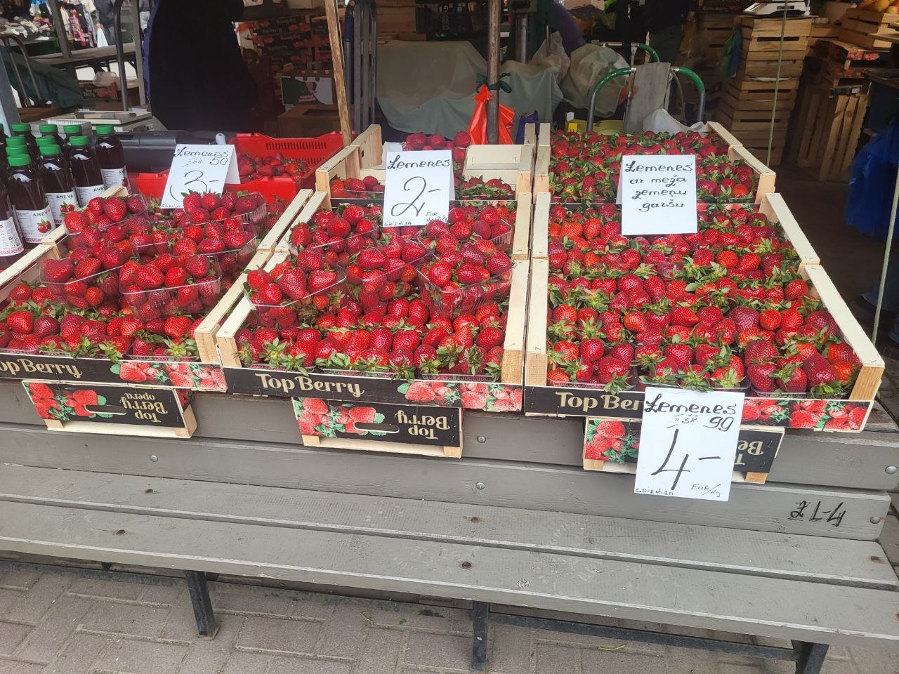 Что касается цен, то вот небольшой обзор на пятницу, 24 апреля, что почём на Центральном рынке. Начнем с хлеба, который всему голова: батон свежего белого можно купить за 1.55-1.70 евро, ржаной хлеб стоит дороже - от 2.50 до 3.70 за кирпичик "Бородинского". Цены на яйца от 1.80 до 2.30 за десяток, в зависимости от размера. Килограмм творога с жирностью 9% можно найти за 5 евро, а сыр разных сортов от местных производителей будет стоить от 8 до 15 евро, тоже за килограмм.