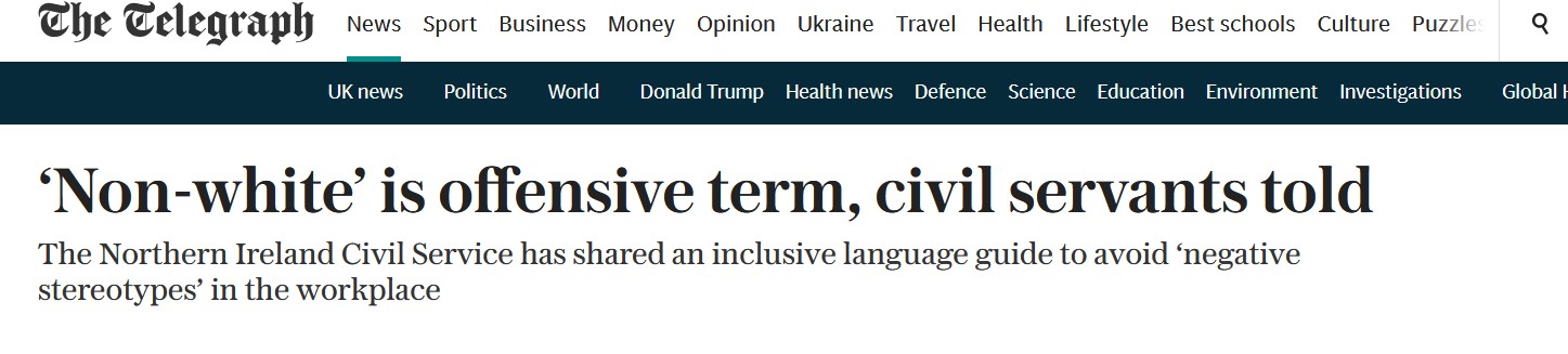 Так, вот как сообщает The Telegraph, она Североирландское отделение Гражданской службы (Northern Ireland Civil Service) распространила руководство по «инклюзивному языку», в котором расширен список слов и выражений, которые отныне будут считаться неинклюзивными и оскорбительными.