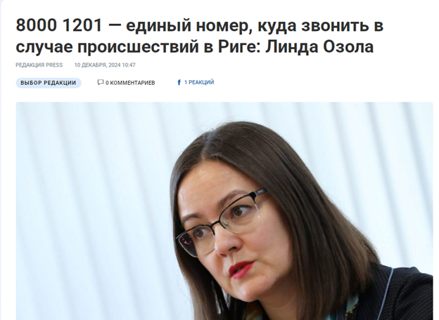 "Таким образом ведомство, которое должно будет устранить беспорядок, получит задание уже от диспетчера самоуправления и приступит к работе. Рижанам не придется ломать голову над тем, какое предприятие или ведомство отвечает за решение проблем в том или ином случае.", - говорила в декабре Линда Озола. Но пока рижане уже месяц как раз ломают голову, почему полиция не реагирует на вызовы? Возможно, теперь диспетчеры единого номера столичного самоуправления помогут решить проблему?