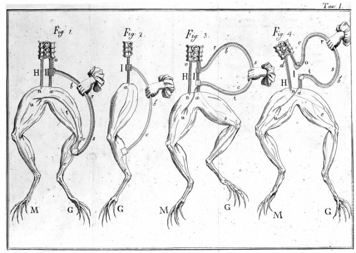 В 1780 году итальянский профессор анатомии Луиджи Гальвани обнаружил, что с помощь электричества можно заставить дергаться мышцы мертвой лягушки. Другие ученые тоже начали экспериментировать, применяя электричество к животным. Племянник Гальвани, физик Джованни Альдини, получив целого быка, отрезал тому голову и, воздействуя током, заставил двигаться его язык. Ученый посылал столь высокие напряжения, что это привело к «очень сильному действию на прямую кишку, вызвавшему испражнение», - писал Альдини.