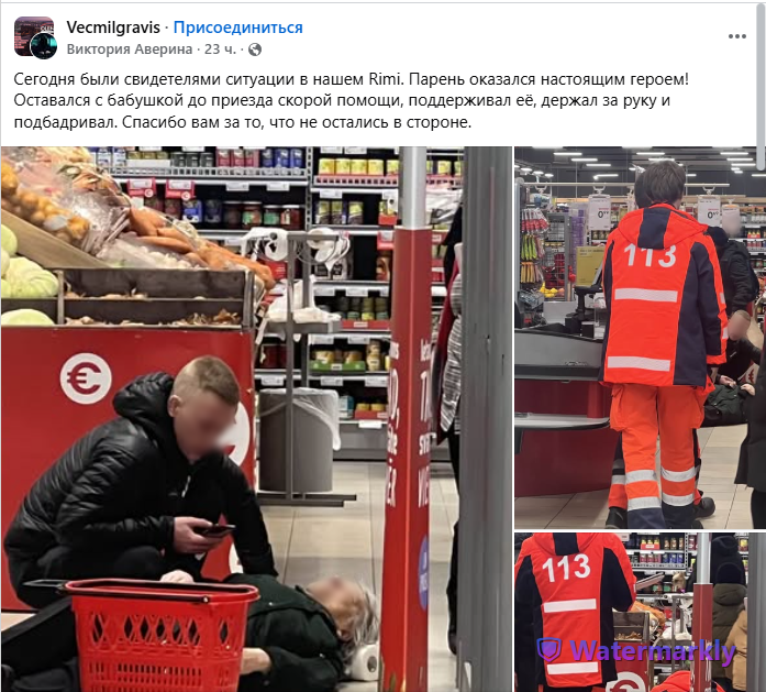 Очевидцы писали, что были тронуты простой человечной заботой, которую проявил парень. Он подложил женщине под голову бумажные полотенца и держал её за руку всё время, пока ждали приезда медиков.