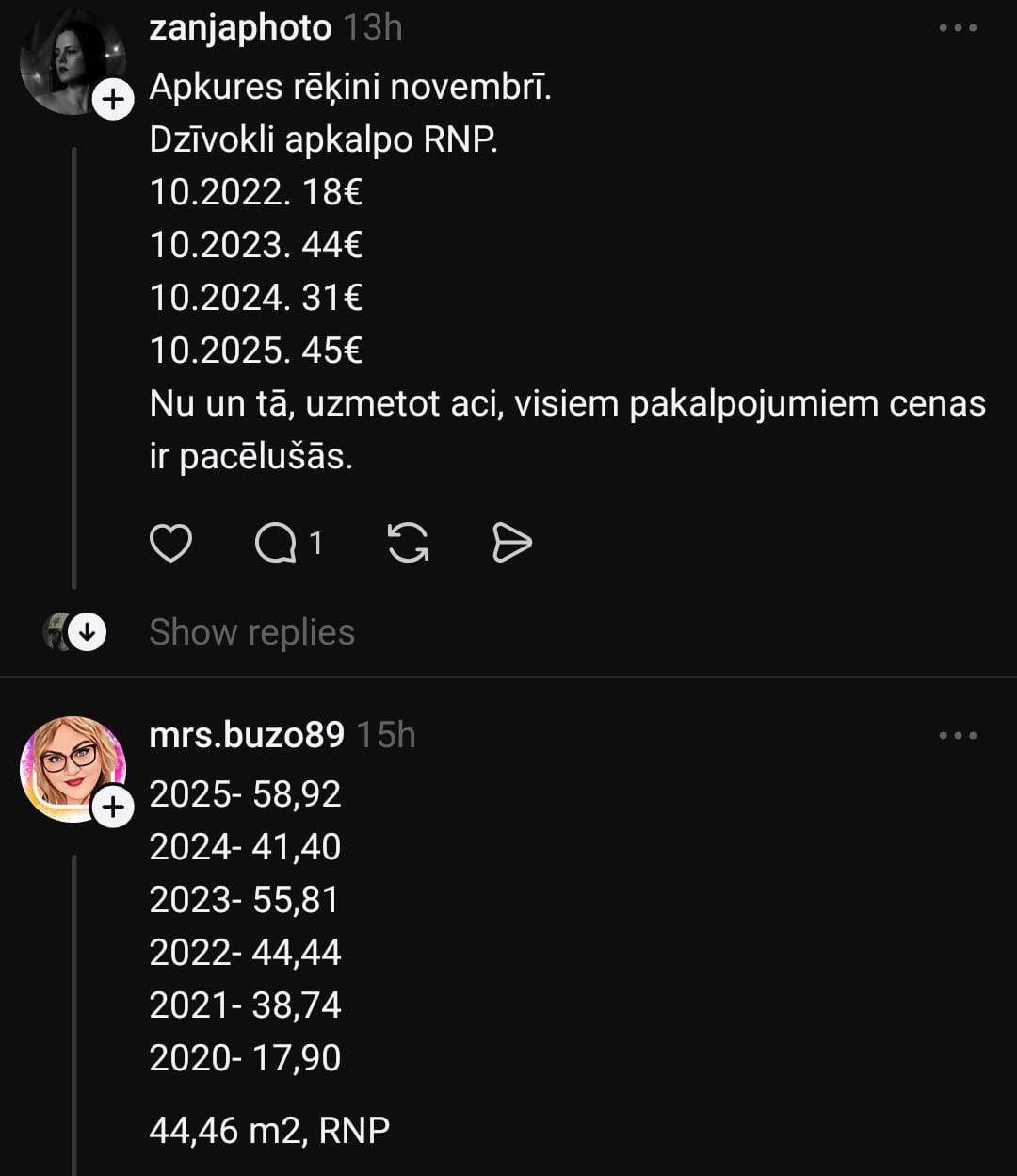 У Инеты же другой опыт: «Не знаю, где именно вы живёте и чем отапливаете, но тарифы «Rīgas Siltums» в любом случае ненормальные. И недаром Рижская дума проводит расследование на эту тему. Если десять лет назад при схожих температурах счёт был около 100 евро, то сейчас — 220. И это первый раз, когда я «взяла в голову» вопрос о ценах».