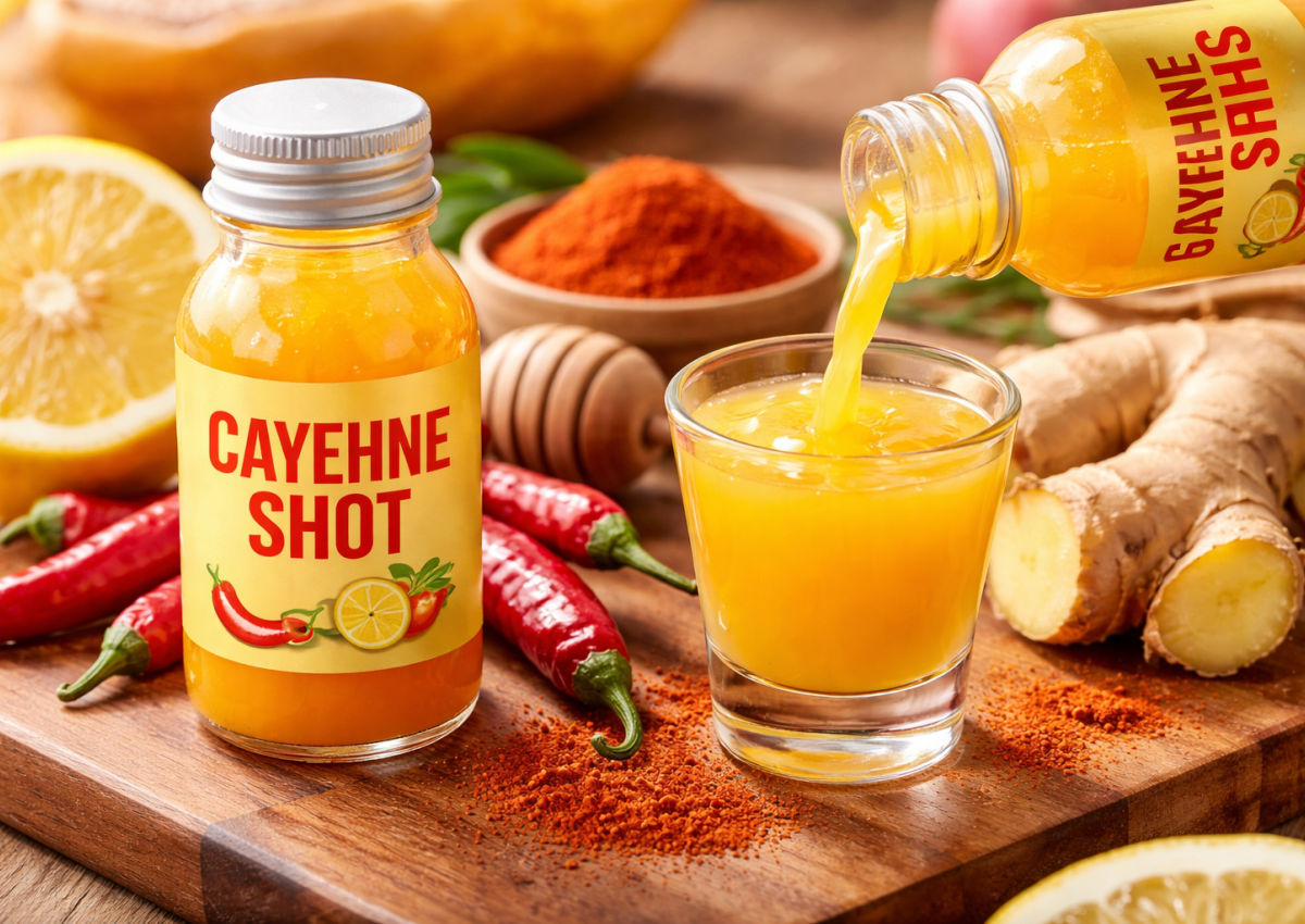 Обычно в составе: кайенский перец, лимон или апельсиновый сок, имбирь, немного кленового сиропа, иногда чёрный перец. Производители уверяют: ускоряет обмен веществ, улучшает пищеварение, снимает тошноту и помогает худеть.