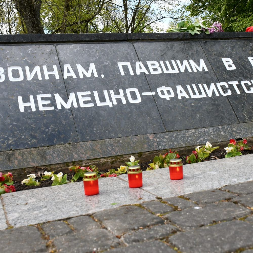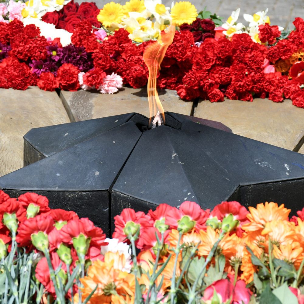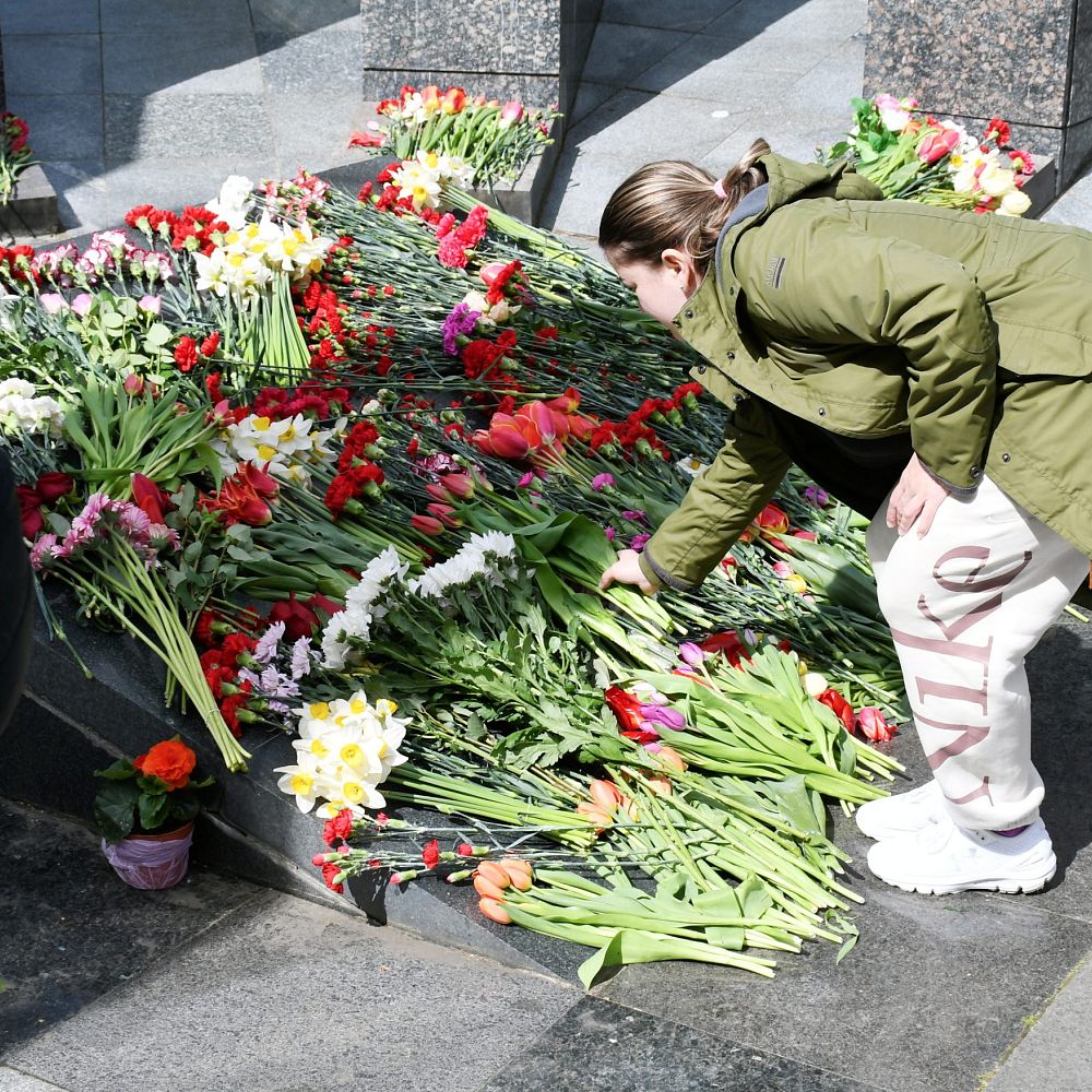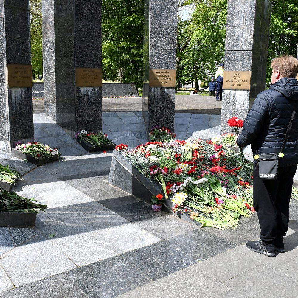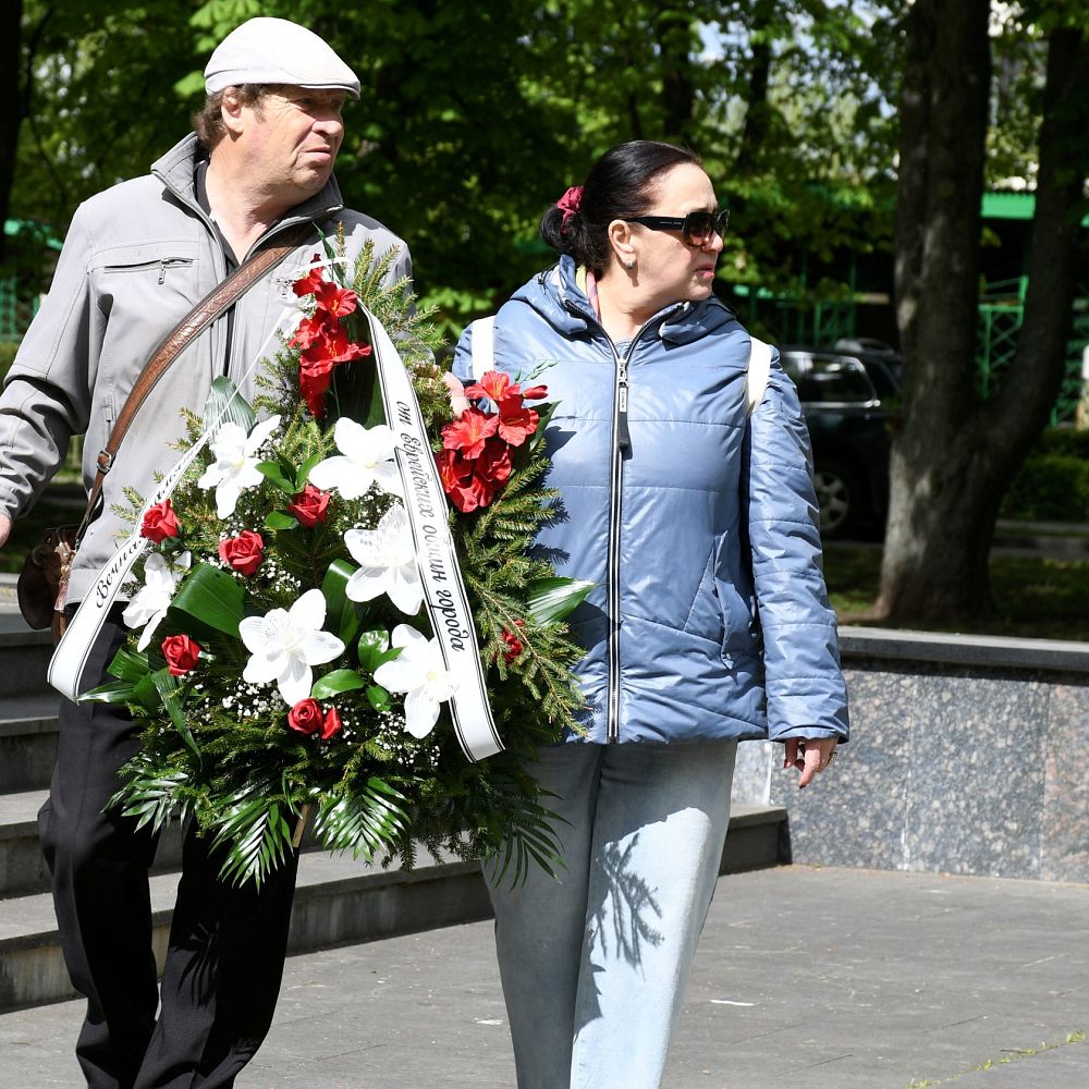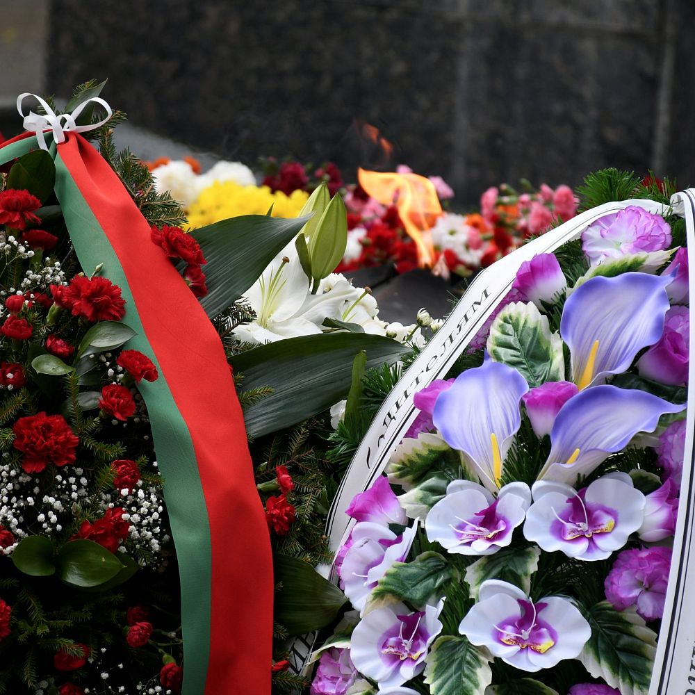 У мемориала лежат венки с разными надписями — «Ничего не забыть, ничто не забыто», «Освободителям от благодарных потомков», «Вечная память героям от ветеранов».