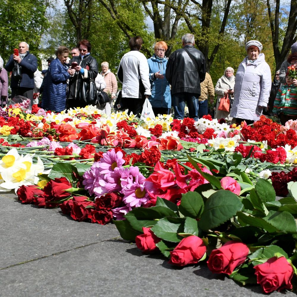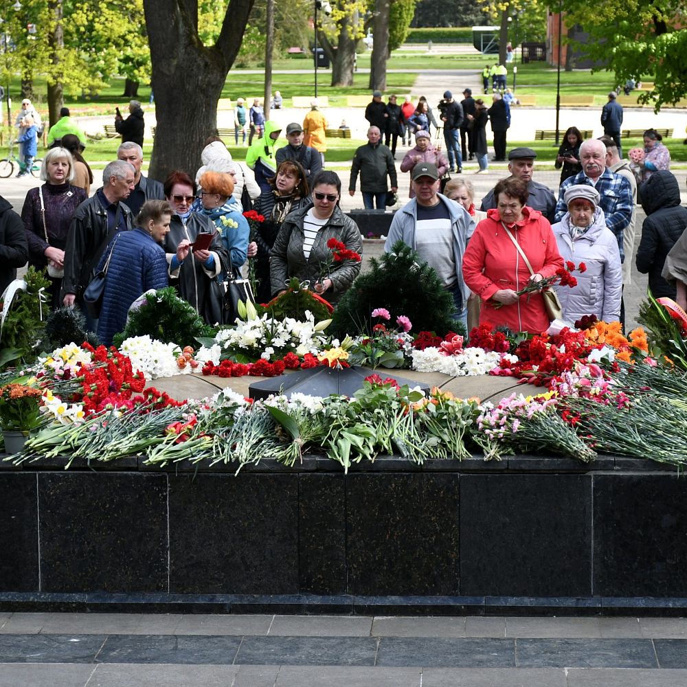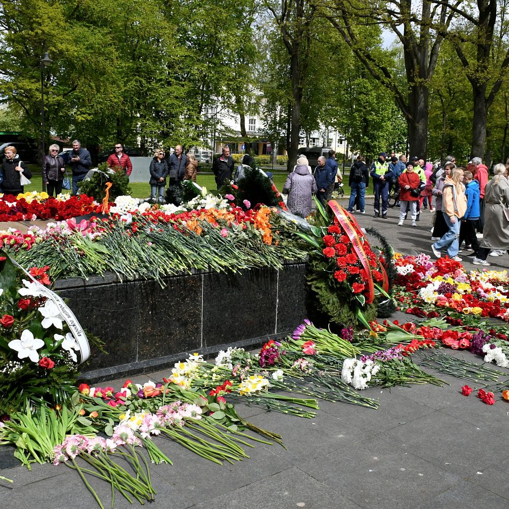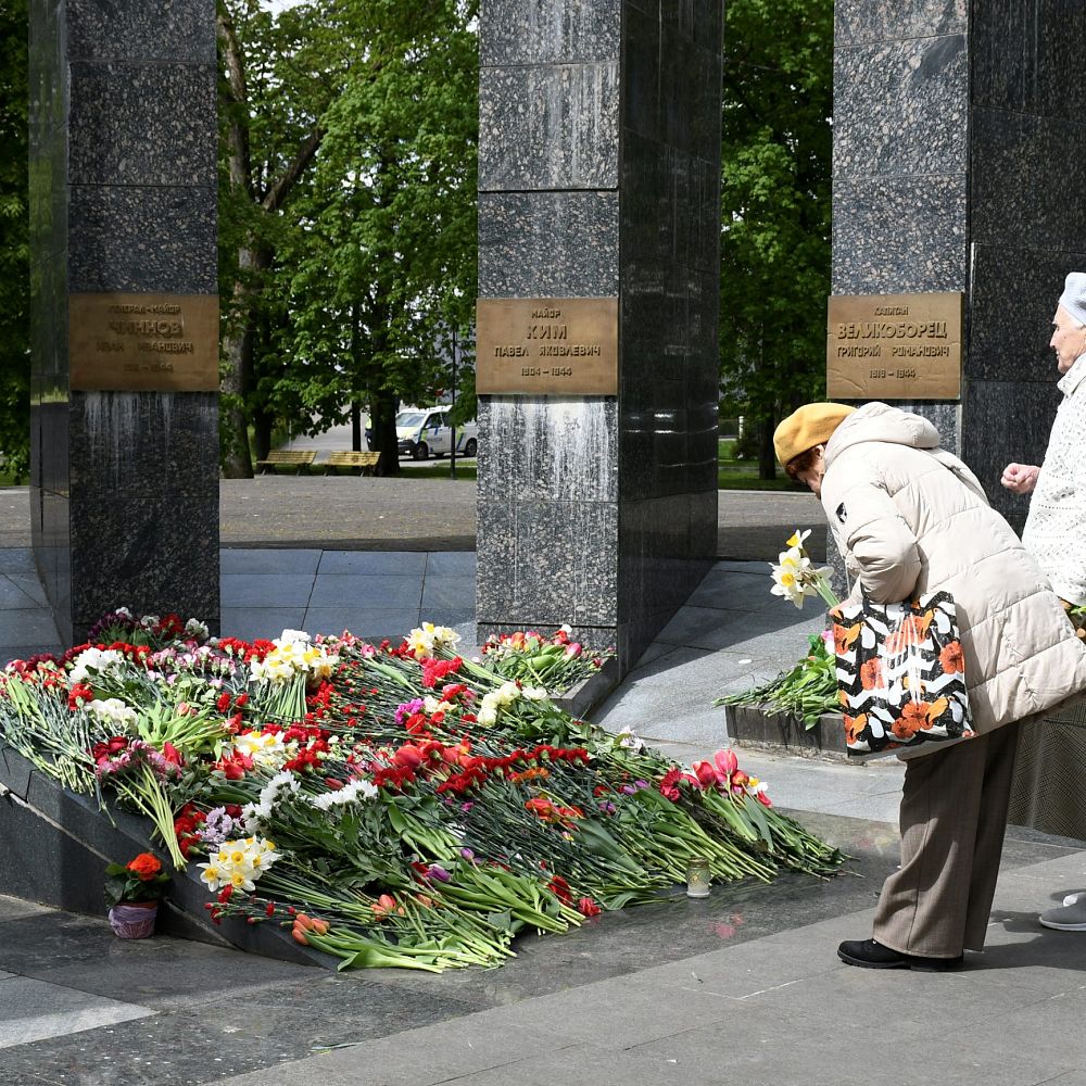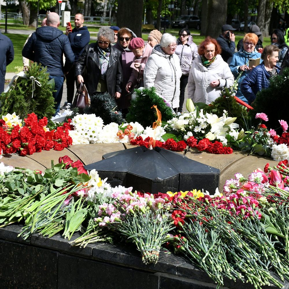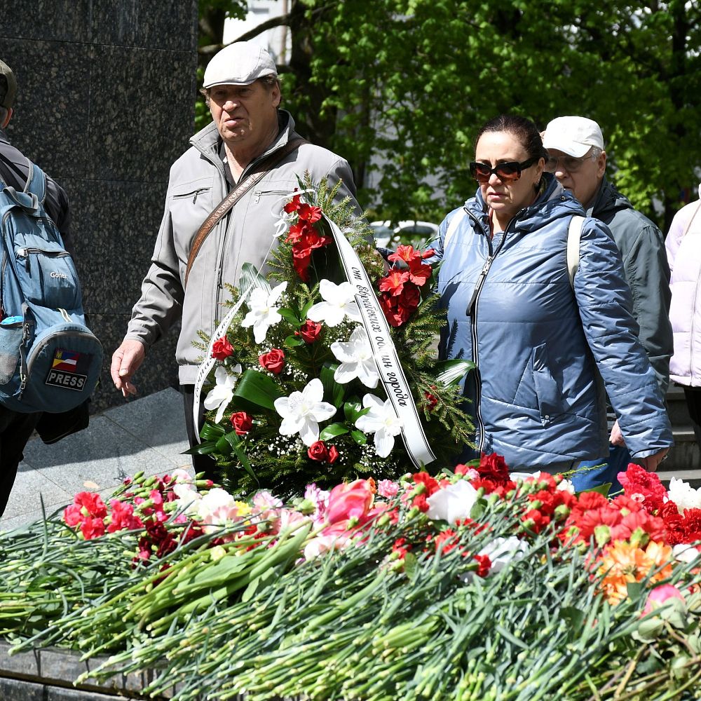 У мемориала лежат венки с разными надписями — «Ничего не забыть, ничто не забыто», «Освободителям от благодарных потомков», «Вечная память героям от ветеранов».