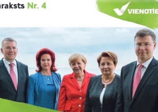 Политическая партия  «Единство»(«Vienotība»)  в своей предвыборной кампании 2013 года активно использовала рекламу с участием бывшего канцлера Германии Ангелы Меркель, которая недавно привлекла внимание своими противоречивыми высказываниями о странах Балтии.