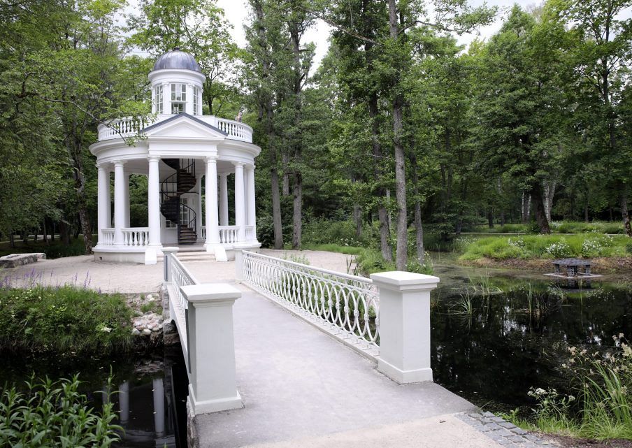 По территории, площадью 20 га, петляют прогулочные дорожки протяженностью 8 км, в обрамлении ухоженных насаждений. Особая гордость парка – 5000 цветущих роз и гортензий.