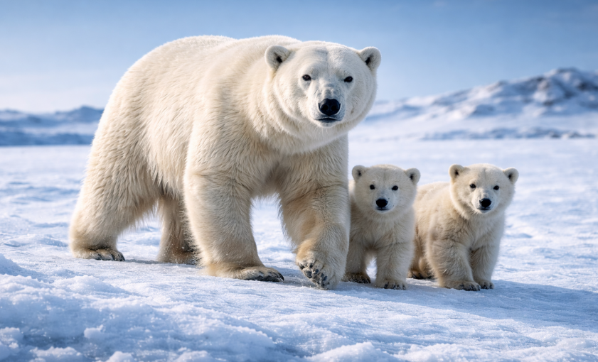 В Канаде зафиксирован необычный случай: дикая белая медведица усыновила детёныша, который не является её собственным.