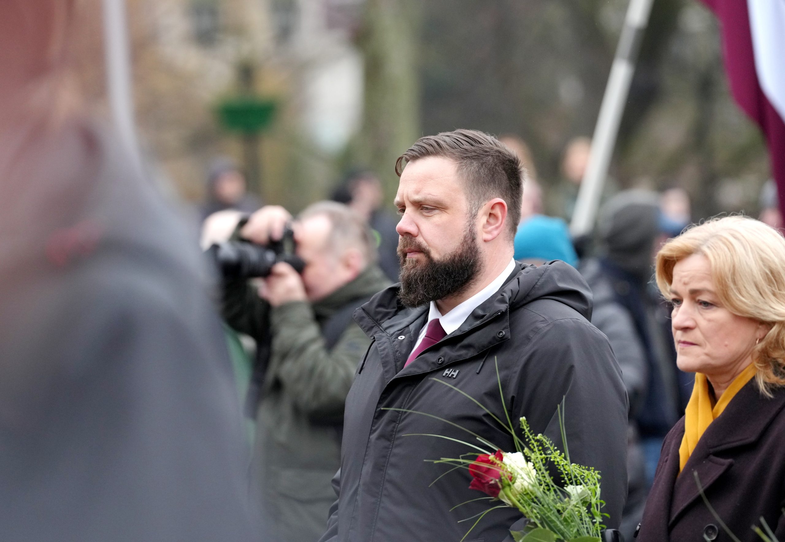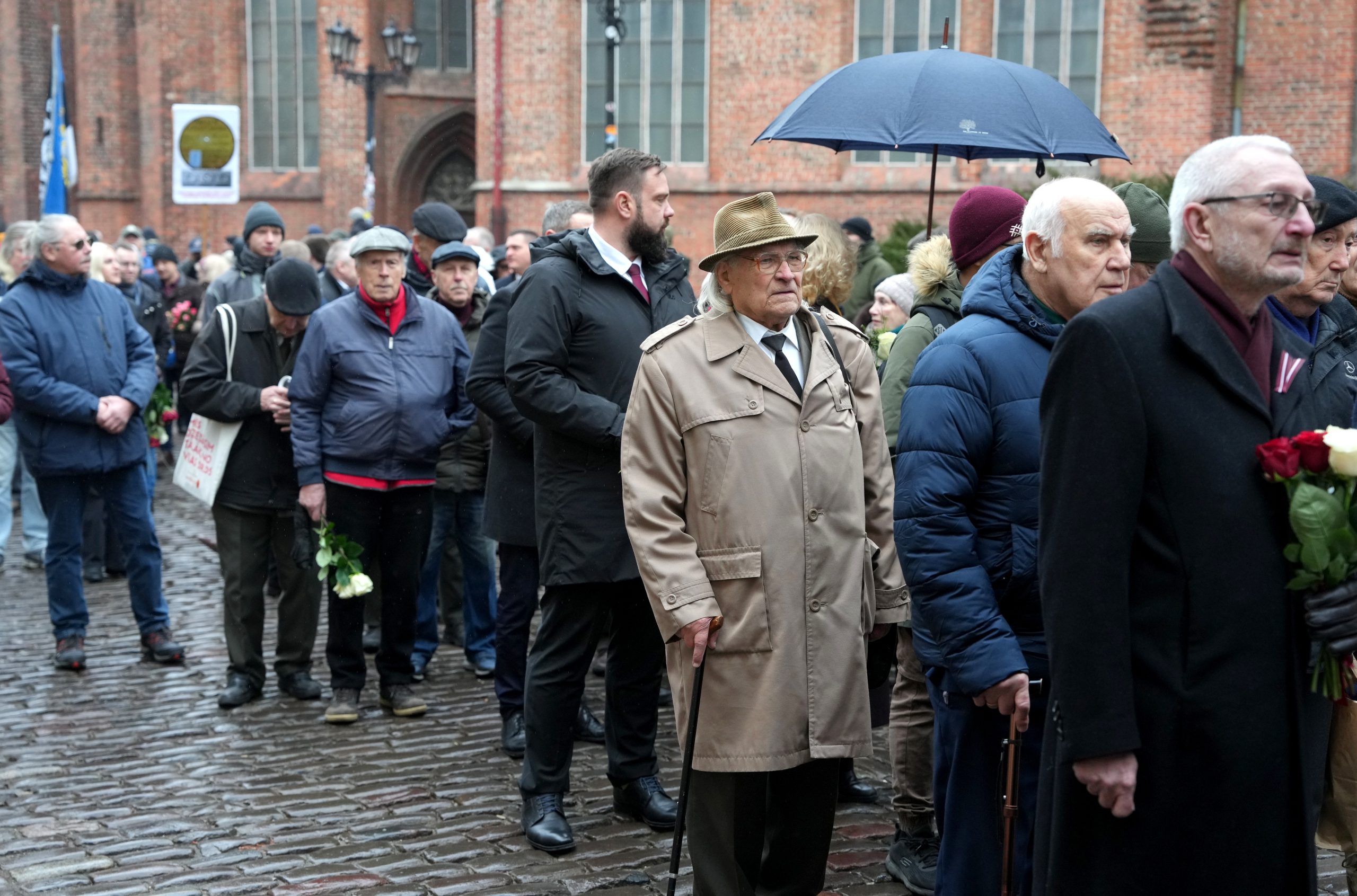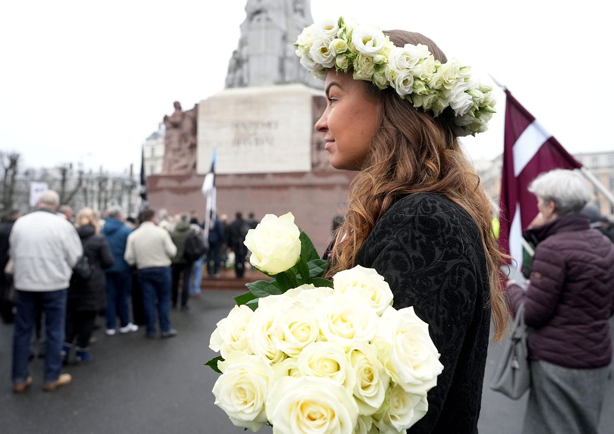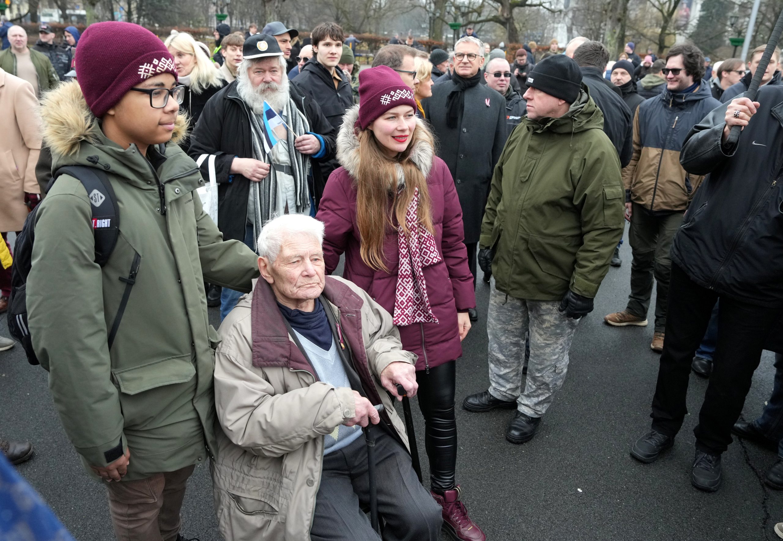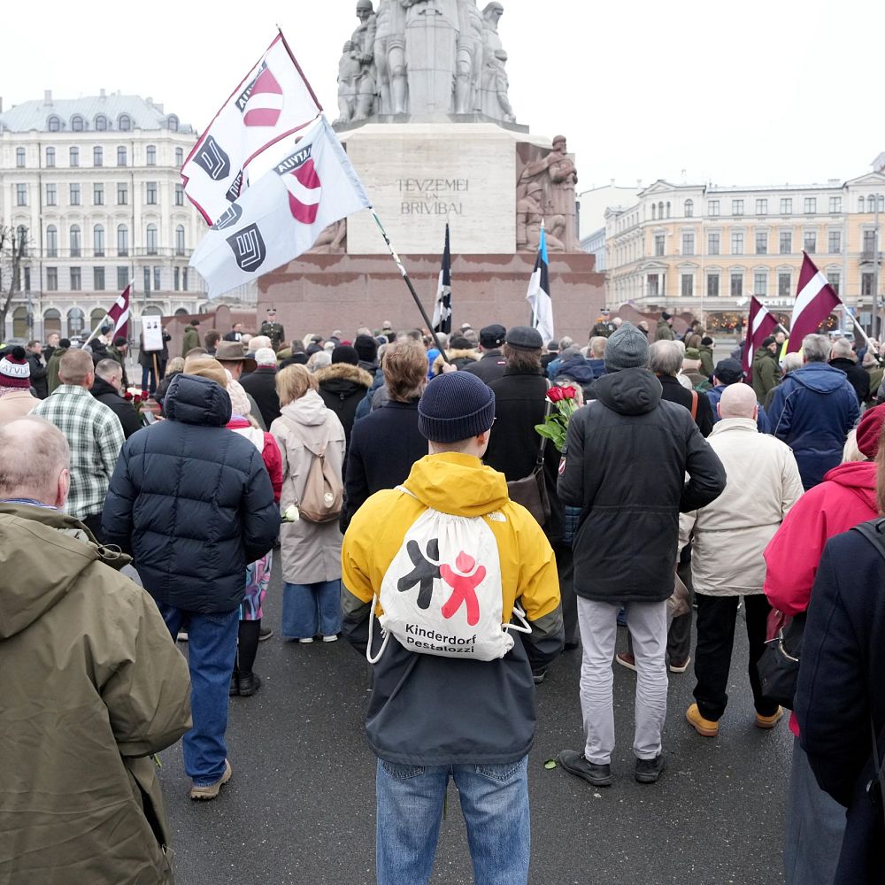 Участники шествия пели песни, некоторые несли флаги Латвии и Эстонии. У памятника их встречала аллея из латвийских флагов, созданная людьми.