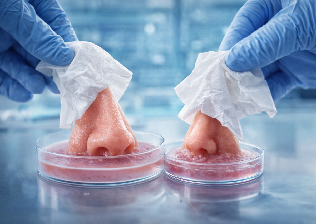 В новом исследовании учёные использовали необычный инструмент — так называемые «мини-носы». Это выращенные в лаборатории трёхмерные модели носовой ткани, созданные из клеток взрослых и детей. Они воспроизводят реальную структуру слизистой оболочки носа и позволяют наблюдать, как вирус взаимодействует с разными типами клеток.