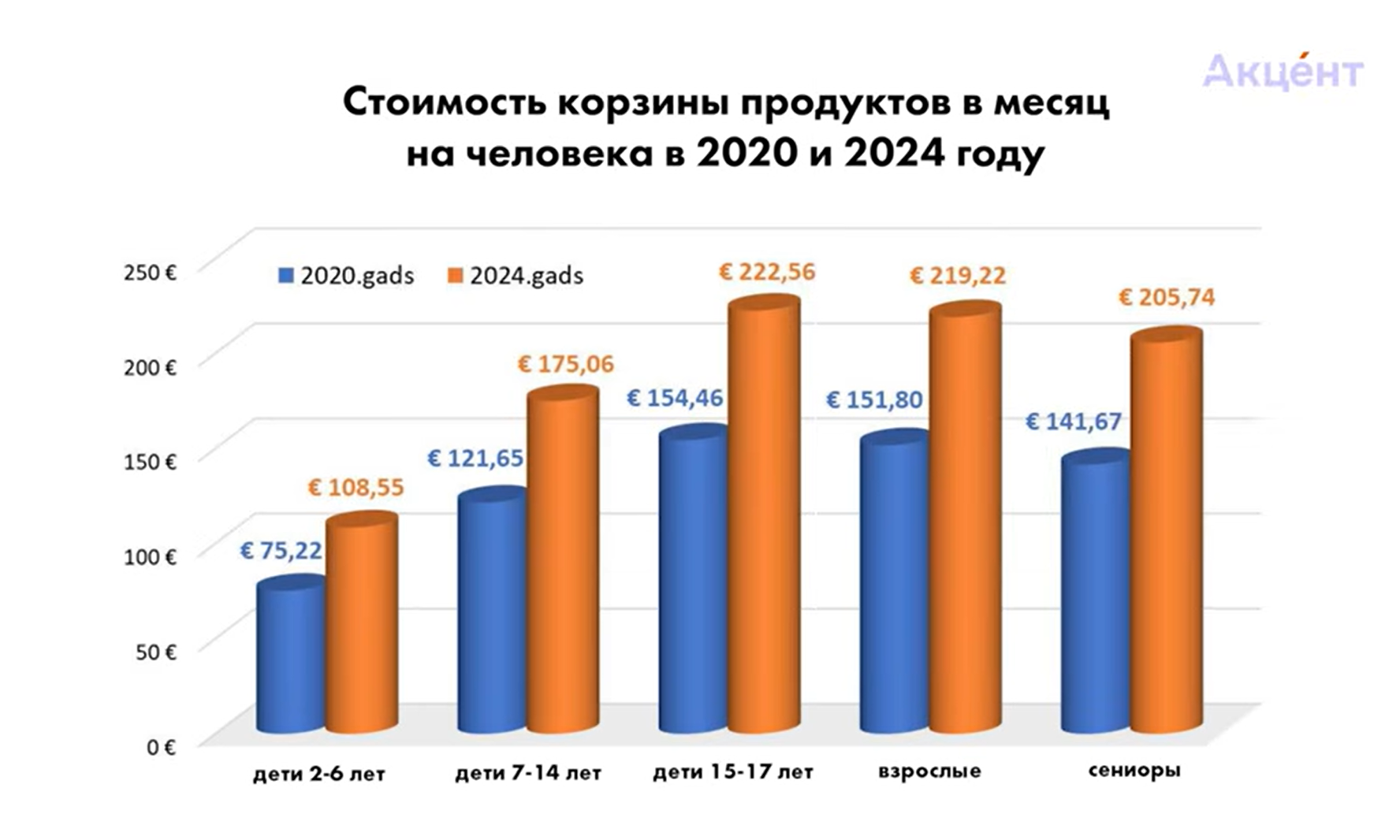 Пять лет назад появилась идея вывести бюджет относительных расходов домохозяйств. Это перечень расходов, которые нужны чтобы поддерживать такой уровень жизни, который латвийское общество рассматривает как приемлемый. То есть с продуктами питания нормального качества, включая овощи и фрукты (без алкоголя и сигарет), одеждой, покупкой товаров для дома и развлечениями, вроде похода в кино.