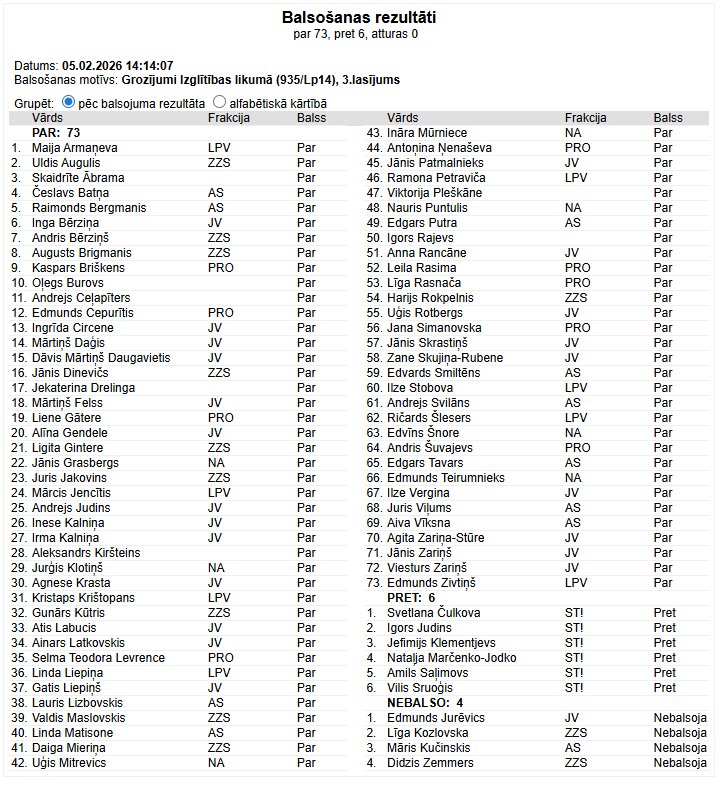 Чекушин опубликовал фамилии тех, кто проголосовал за эту поправку. Интересно, что в список тех, кто подобный законопроект поддержал, вошли и либеральные "Прогрессивные", и партия Шлесерса "Латвия на первом месте".