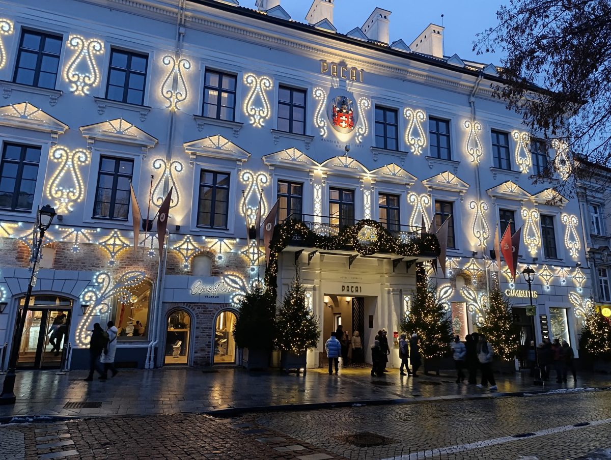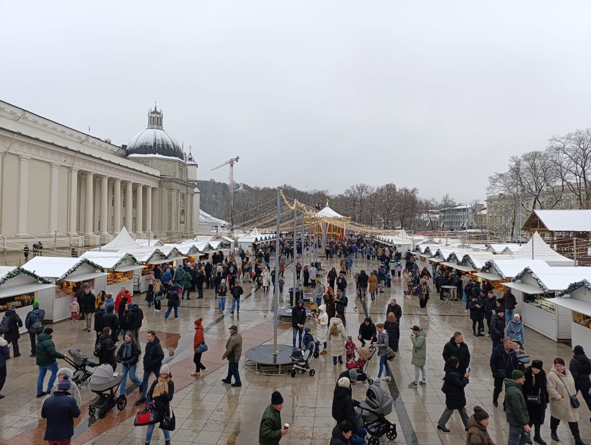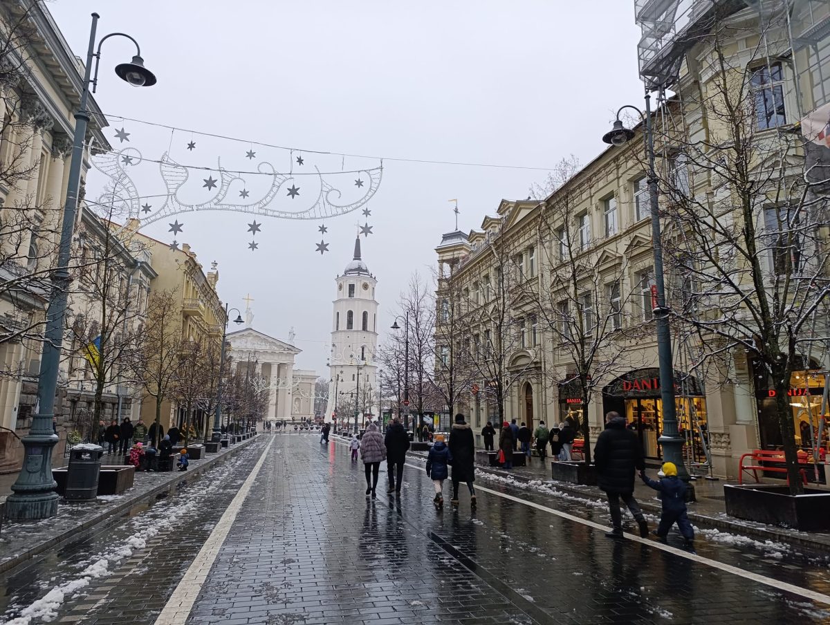 Салон автобуса заполнен максимум на треть. Все обещанные удобства присутствуют и функционируют, чем народ активно пользуется всю дорогу. Едем без остановок и в районе 11 уже в Вильнюсе. Быстренько разобравшись с делами устремляемся в центр - к традиционному месту стояния новогодней ёлки. От автовокзала пешком минут 15.