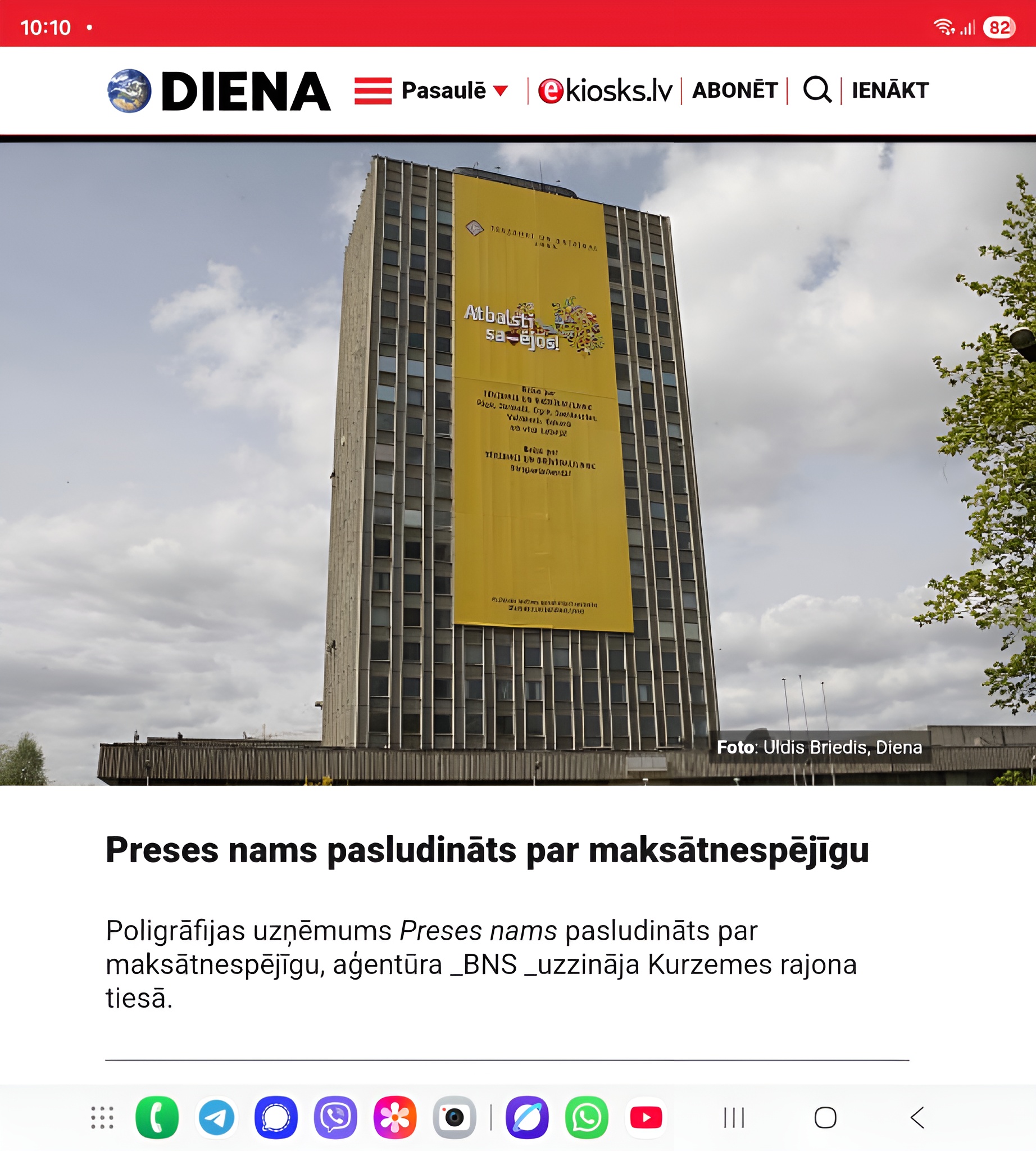 ...издательство «Preses nams» было объявлено неплатежеспособным. А знаменитая многоэтажка на Кипсале окончательно превратилась из «Дома печати» в «Дом призраков». Какая связь? Связь прямая, и она неоднократно озвучивалась латвийскими издателями.