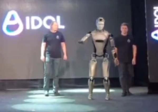 Двое сотрудников компании сопровождали AIDOL и пытались поддержать эффект выхода, но после падения им пришлось поднимать машину вручную. На кадрах видно, как силиконовое лицо андроида светится, а сам он беспомощно лежит на полу под чёрной тканью.