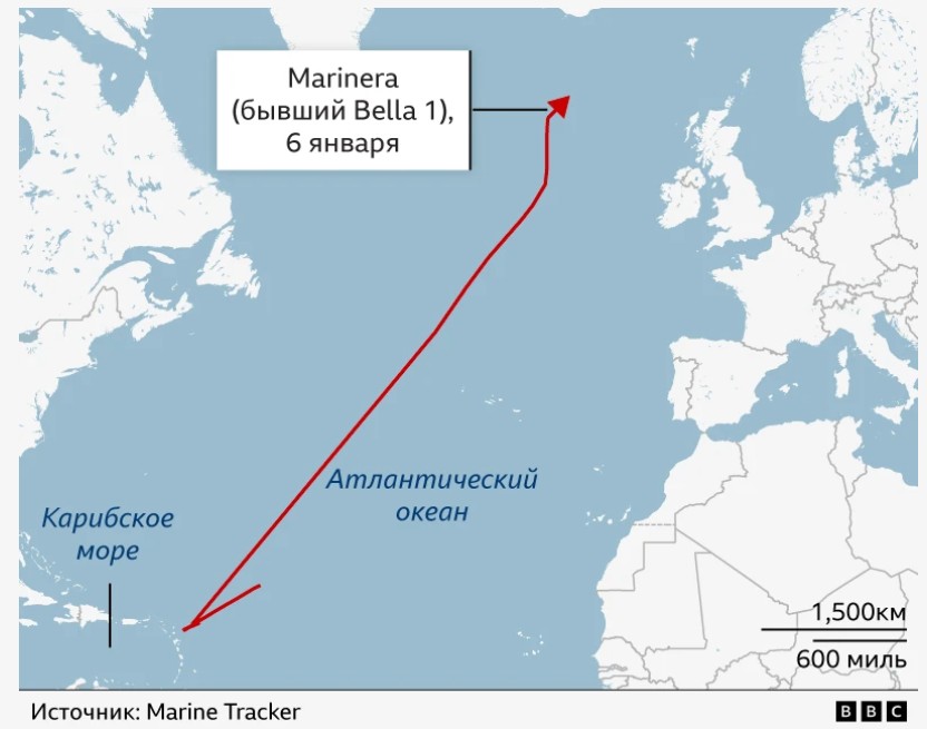 Танкер, который шел без груза, ранее использовался для транспортировки венесуэльской нефти и во вторник, 6 января, находилcя между Шотландией и Исландией. Он планировал встать под погрузку в Венесуэле, но не смог сделать этого, уточняет WSJ.