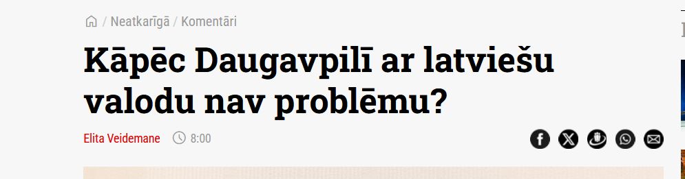 Он признает, что в Даугавпилсе доминирует русский язык. «Но в то же время — если сравнить с тем, как было, скажем, пять лет назад… националисты тут же набросятся на меня… Русицизм (rusicisms) Даугавпилса преувеличивают. Даугавпилс — толерантный город. Конечно, есть ветераны войны, чье мышление никто не изменит. Зато в молодежи я вижу будущее, и они в большинстве своем умеют говорить по-латышски. Да, Даугавпилс — русскоязычный город, но, зайдя в любой магазин, со мной будут говорить по-латышски. Раньше так не было. Тогда скорее стоит начать переживать из-за одного микрорайона Риги, где латышский язык вообще не слышен».